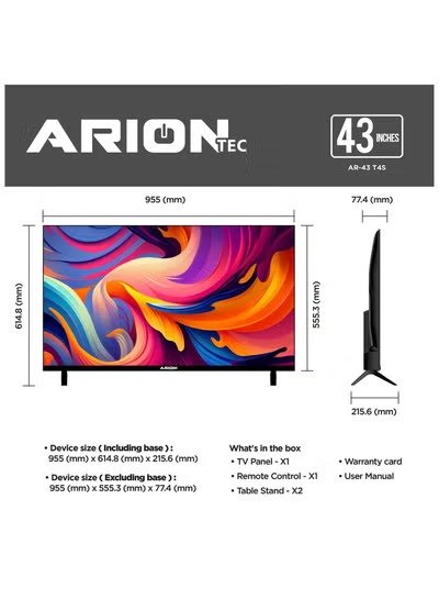 - Transform your living room into a digital hub with the Arion 43-Inch Smart Android TV.